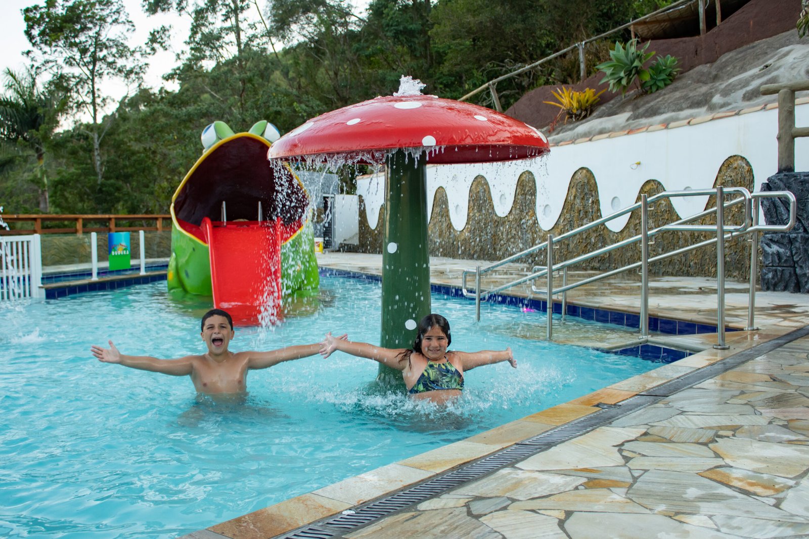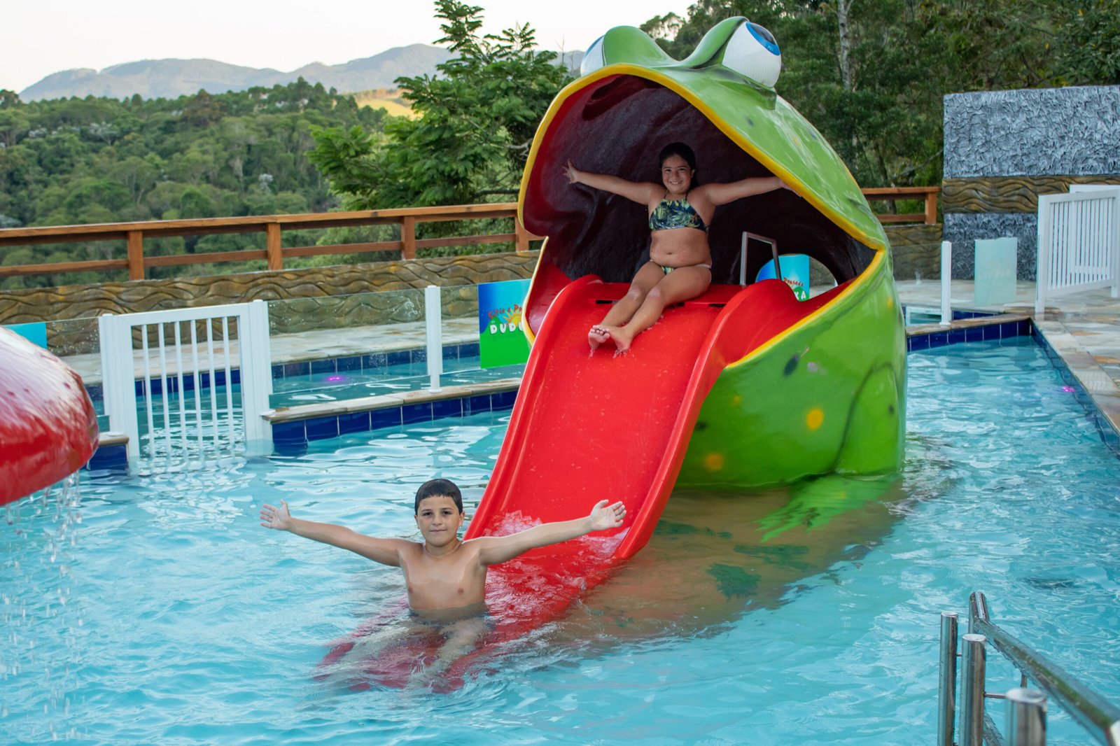 Nossas piscinas contam com brinquedos onde seus filhos terão momentos inesquecíveis, vão amar escorregar na língua do zef…sabe quem é o zef ? É um sapo Gigante. Não quer o sapo? Vai de pelicano, só não da para ficar fora dessa.