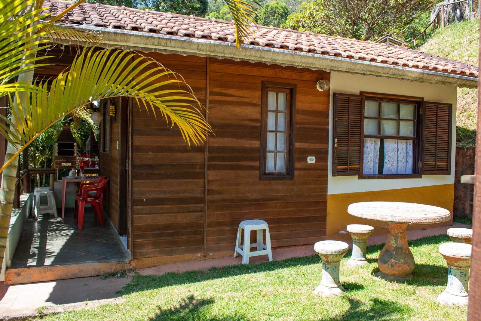 Temos seis chalés, todos na parte alta